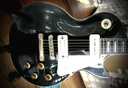 The next day in our Little Italy rehearsal room, I stood the classic in a guitar stand while I fiddled with preamp presets trying to match the hotter pickups when it tipped slowly forward in a tangle of guitar cord, landing face first on the carpet with a crack, the headstock hanging from a clean break. Sheepishly, I took her back to Jimmy who saw to it that she was repaired as best as possible. She was relegated to back up duties afterwards.