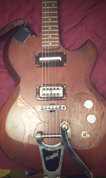 I’m not too concerned about the finish/lack thereof because this was meant to be my work horse and I can’t have nice looking guitars because I don’t treat them very well… but yeah this is my main woman at the moment, and I don’t see myself getting rid of it any time soon. It’s heavy, unconventional and looks like a guitar cross breeding project gone wrong, but I love it. You can see it being abused if you live in Brisbane with my band foster&lucifer. We suck.